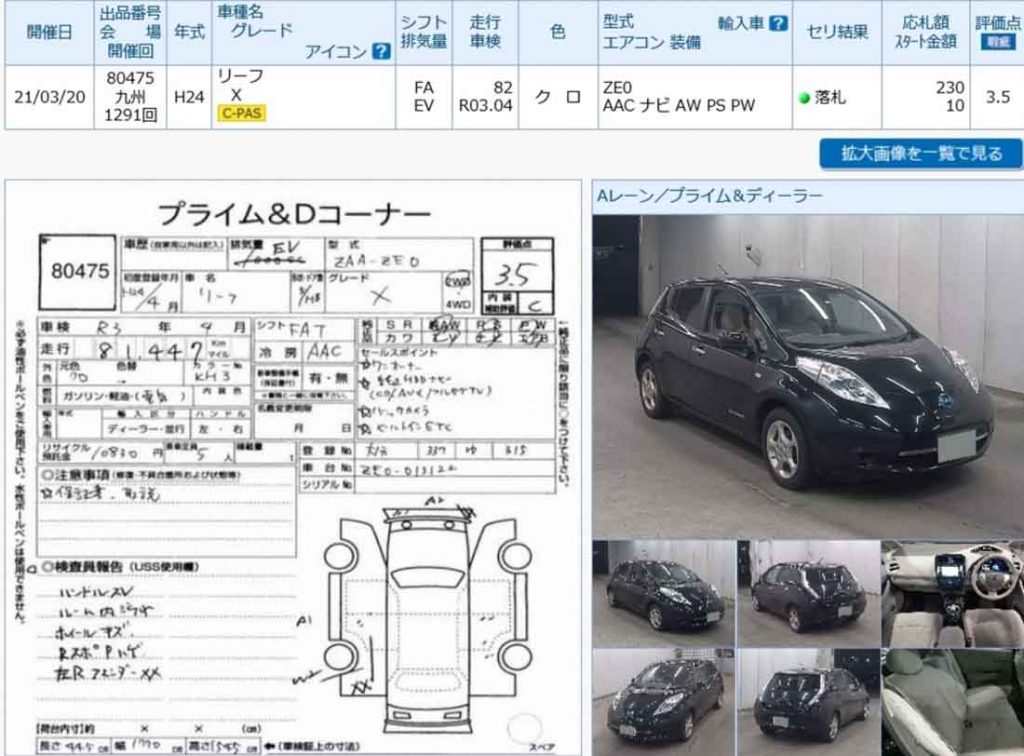 2013 Nissan Leaf 2013 Nissan Leaf (1)2013 Nissan Leaf (2)2013 Nissan Leaf (3)2013 Nissan Leaf (12)2013 Nissan Leaf (4)2013 Nissan Leaf (5)2013 Nissan Leaf (6)2013 Nissan Leaf (7)2013 Nissan Leaf (8)2013 Nissan Leaf (9)2013 Nissan Leaf (10)2013 Nissan Leaf (11)2013 Nissan Leaf (13) Auction Number Auction List Auction Rate 3.5 Auction Type USS Kyushu Purchase Y/M 2021/03 Bid Price Won ¥230.000 Model Code ZE0 Manufacture Y/M 2013/4 Mileage 81.447 km Engine Capacity EV Свяжитесь с нами